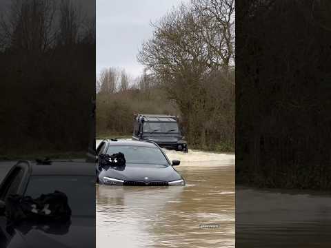 Can’t Park Your BMW There…😮😬. #Flooded #Stuck #Fails #Landy #BMW #Defender90 #RiverCrossing #FYP