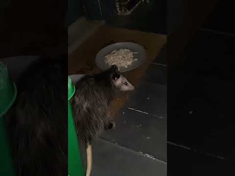 Very old opossum is back to have a night snack -kittens are gone, but backyard has other activities