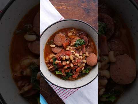 Black-Eyed Pea Stew with Sausage and Kale is the perfect southern stew. #southerncooking