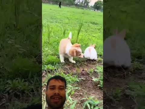 Puppy catching rabbit 🐰🐰 cute pet debut plan Golden sun original #goldenstars