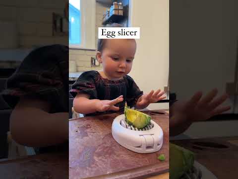 One year old using a kitchen knife #toddler #momblogger