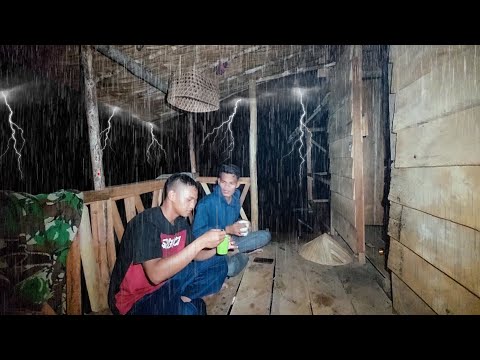 REAL⁉️KEDATANGAN HUJAN DERAS PETIR GEMURUH ANGIN KENCANG SAMPAI PAGI DI PONDOK HUTAN