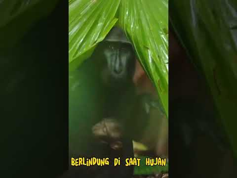 Induk kera berlindung di saat hujan