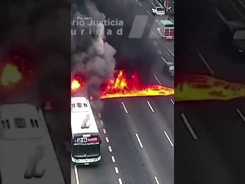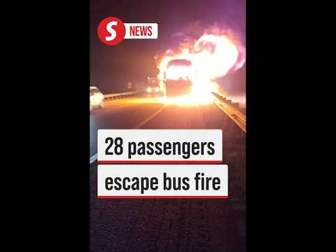 Passengers run for their lives, cars drive through flames after bus catches fire #shorts