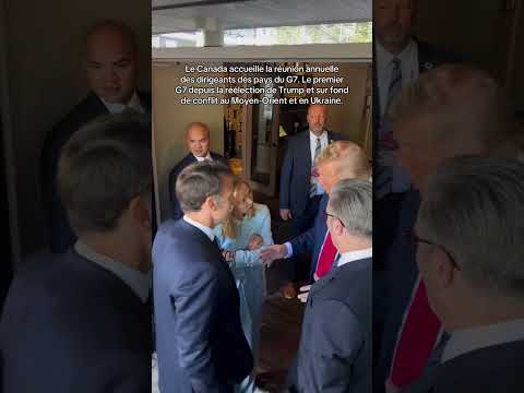 La poignée de main entre Donald Trump et Emmanuel Macron au G7 en présence de Giorgia Meloni.