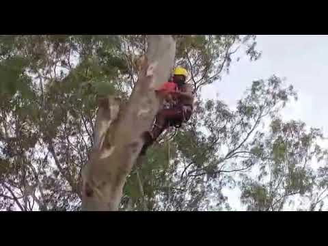 How to prune a Eucalyptus tree. Professional arborist in action.