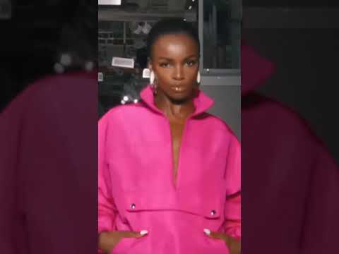 Leomie Anderson walking at LaQuan Smith Spring/Summer 2023. #runway #fashionmagazine