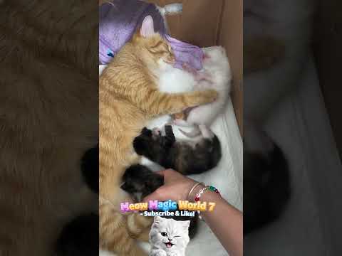 Mama cat's hungry babies won't stop πΉ #kittens #cute #funny #shorts
