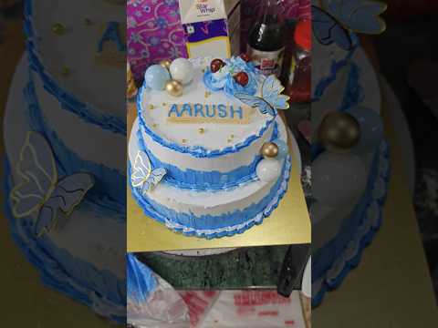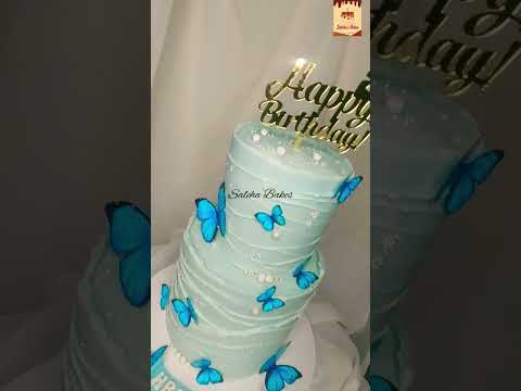 Two-Tier Blue & White Butterfly Cake #shorts #shortsfeed #cakedecoration #trendingcake #video #viral