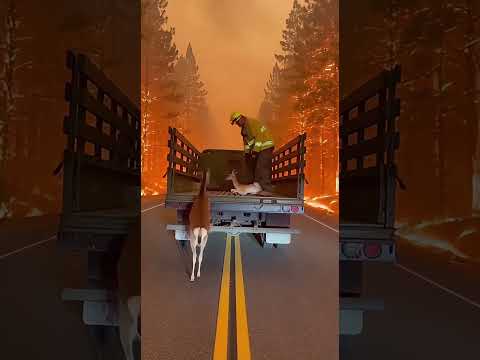 Firefighter Pulls Deer & Fawn From Wildfire Into His Truck 🦌🔥 #Shorts #rescue #deer #firefighter