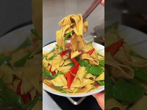 Stir-fried Dried Tofu Skin with Hard Vegetables and Hot Peppers #Shorts