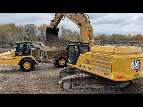 Brand New Caterpillar 352 Excavator & 730 Articulated Trucks Working On River Bed - Interkat SA - 4k