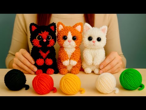 Step-by-step tutorial on how to make a cute cat with yarn (beginner to professional)🧶😻