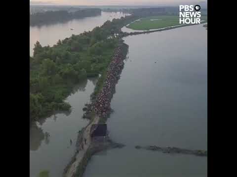 Drone footage shows Rohingya refugees entering Bangladesh