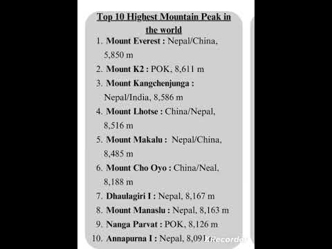 Top 10 Highest Mountain In The World/The Highest Mountain Peak In The World