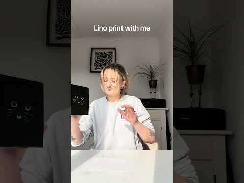 Print with me! ✨🩷🐈⬛#cats #blackcats #printmaking #linoprintprocess #linoprints #cat #linoprint