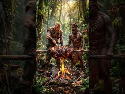 Viking Roasts Giant Buffalo in Tropical Jungle 🔥 Epic Tribal Feast & Juicy Meat