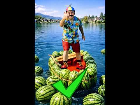 Man Tries to Balance on a Floating Watermelon Boat 🍉😱 | Unreal AI Video 2026 #shorts #funny