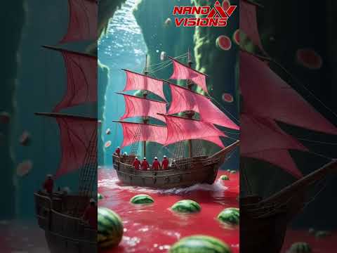 a boat in the water with watermelon floating around it Ai Video Generator @NanoVisionsAI