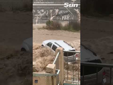 RAGING floodwaters sweep cars away in San Diego during record-breaking rainstorm #shorts