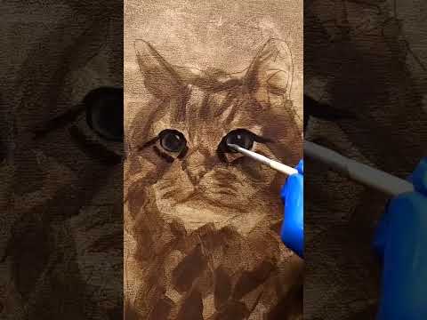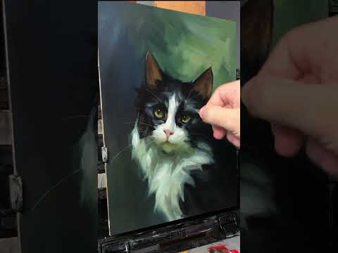 Pet portrait oil painting. Making the whiskers with a palette knife. #oilportrait #petportrait