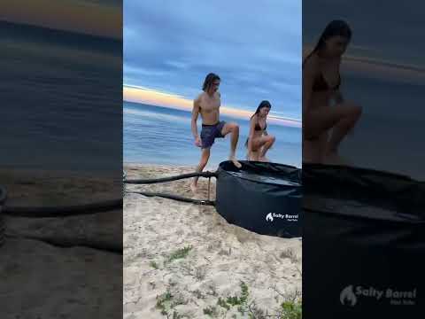 Portable wood fired hot tub at the beach
