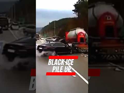 Black ice causes car crash pile up #shorts #carcrashes #icyroads #pileup