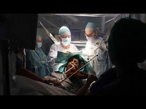 Une musicienne joue du violon pendant une opération du cerveau
