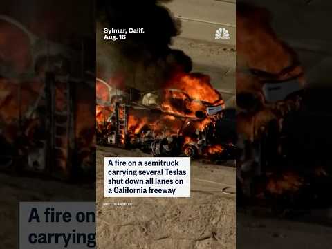 Semitruck fire carrying Teslas shuts down freeway