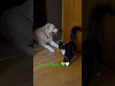 They kiss every morning 💚😘#puppy #cute #doglife #pets #doggo #kidsvideo #love #kitten #kitty