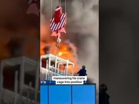 Crane operator rescues man from burning building #shorts