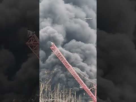Incredible Moment Crane Operator Saves Man From Towering Inferno
