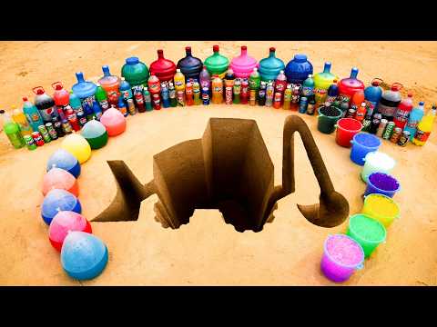 Making a Giant Excavator Pit with Coca-Cola, Fanta, Sprite, Orbeez & Mentos