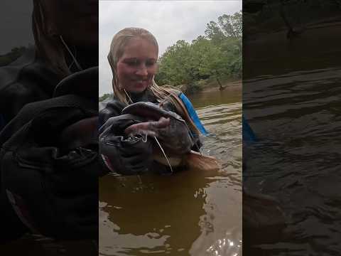 Noodling her First Catfish in OkieLand! Nice Grab! #catfish #noodling