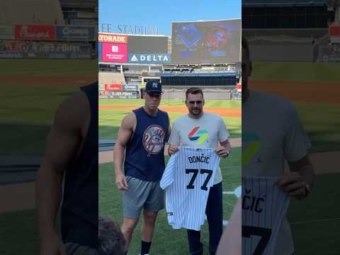 Luka links up with Aaron Judge at his first time in Yankee Stadium 👀