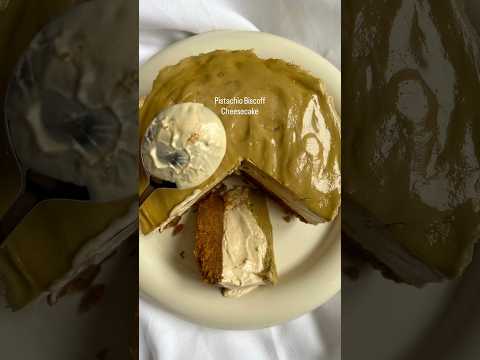 Creamy No Bake Vegan Pistachio Biscoff Cheesecake #vegancake #vegancheesecake #biscoffcheesecake