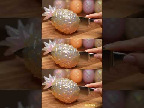 Slicing a Glass Pineapple, ASMR Magic. Unreal Crystal Pineapple Cutting ASMR. Glass Pineapple Slice.