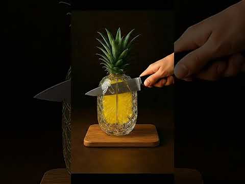 Glass Pineapple Cutting Ultra Realistic 4K