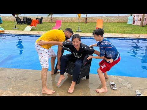 Piscine challenge - le perdant tombe dans la piscine adel sami