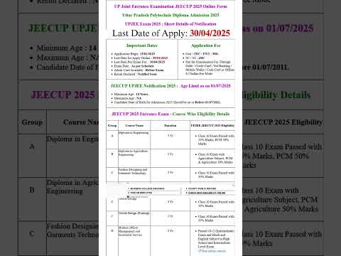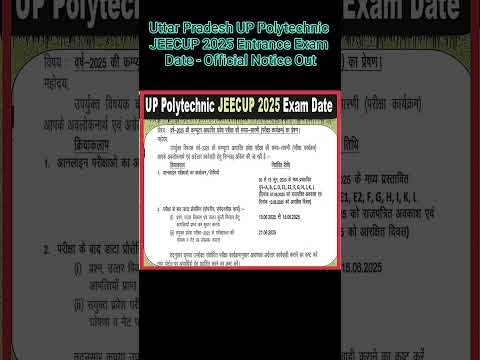 Jeecup Exam Date 2025 | Up Polytechnic Entrance Exam 2025 date #jeecup2025 #polytechnic #shortsfeed