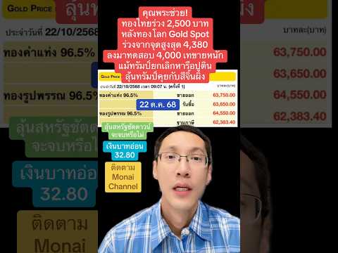 คุณพระช่วย!ทองไทยร่วง 2,500 บาทหลังทองโลก Gold Spot ร่วงจากจุดสูงสุด 4,380 ลงมาทดสอบ 4,000 เทขายหนัก