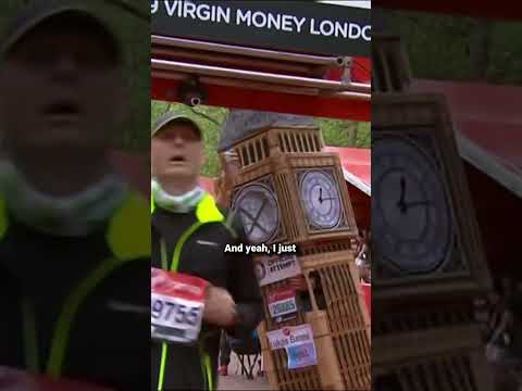 #shorts Runner dressed as Big Ben gets stuck at finish line of London Marathon
