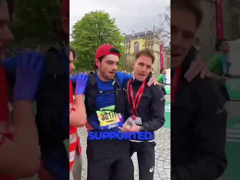 Fellow runners help runner to the finishing line #londonmarathon #buckinghampalace #london