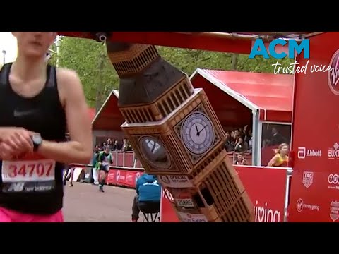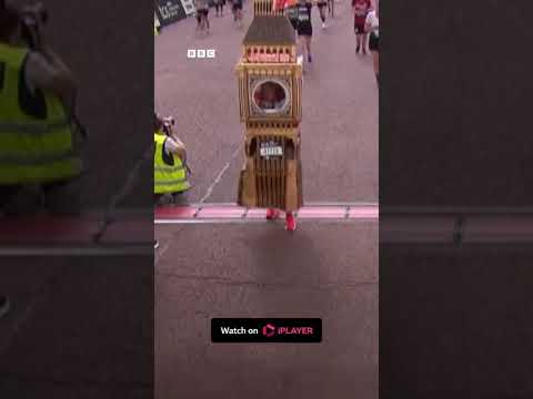 Runner dressed as Big Ben gets stuck at finish line of London Marathon
