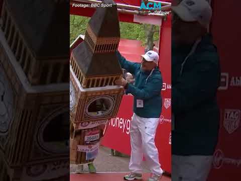 Big Ben Gets Stuck at the Finish Line 😂🏃♂️🕰️| Original Video Credits:🎥 @bbclondon via Instagram