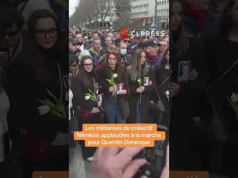 Les militantes du collectif Némésis applaudies à la marche pour Quentin à Lyon de l'extrême droite