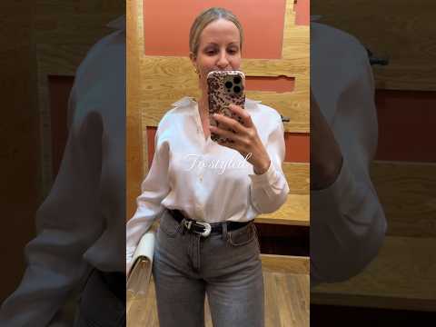 From thrifted to styled. Date night look, business casual ootd, silk button down. #trendynotspendy