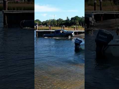 Guy almost loses his truck at a boat ramp!! Part one