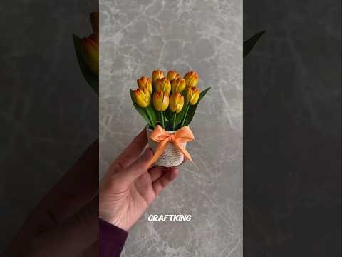how to make handmade tulip flower pot DIY tulip flower bouquet 💐 making | craft ideas #shorts