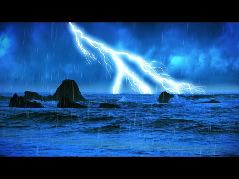 Rain and Thunder Sound with Ocean Waves âš¡ White Noise for Sleeping 10 Hours